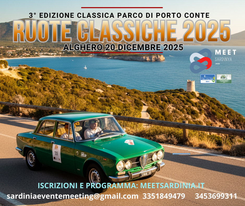 Torna l'appuntamento con le Auto e Moto classiche d'epoca con un evento in modalità turistica e in tema Christmas, in programma sabato 20 dicembre. Si tratta di una passeggiata/carovana a percorso definito, guidati da un'auto apripista che scorterà il gruppo nei punti più suggestivi e panoramici, attraverso le strade del Parco Naturale Regionale di Porto Conte.